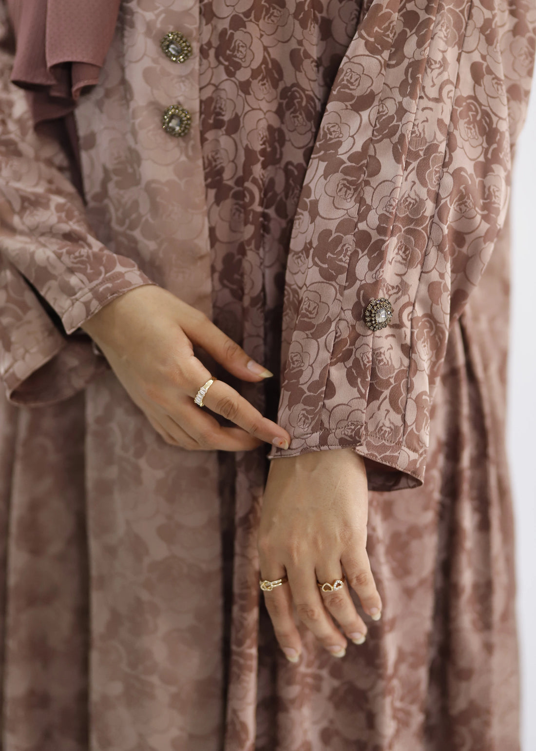 Gracefully regal, the Dark Gold Silk Abaya brings together elegance and artistry. Featuring a rich,...