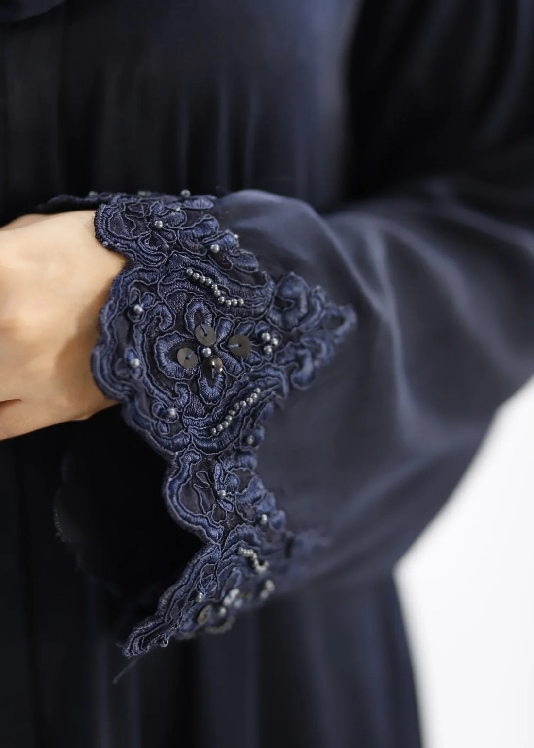 Exude timeless elegance with our Navy Silk Abaya, crafted from luxurious silk in a deep,...