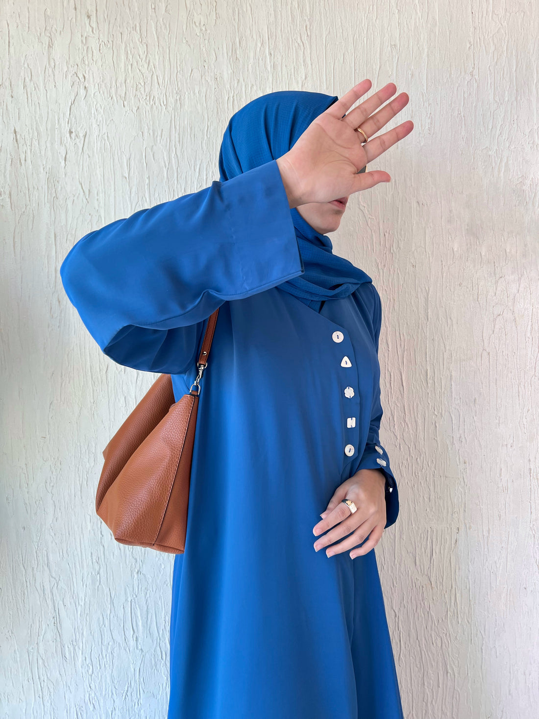 Embrace graceful charm with our Blue Abaya, thoughtfully designed for the modern modest wardrobe. Crafted...