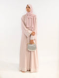 The delicate embellishment work enhances the abaya’s graceful drape while maintaining a clean and professional aesthetic. Thoughtfully balanced to provide subtle shimmer without overwhelming the design, it transitions effortlessly from work settings to semi-formal gatherings.