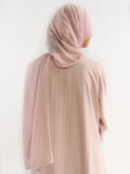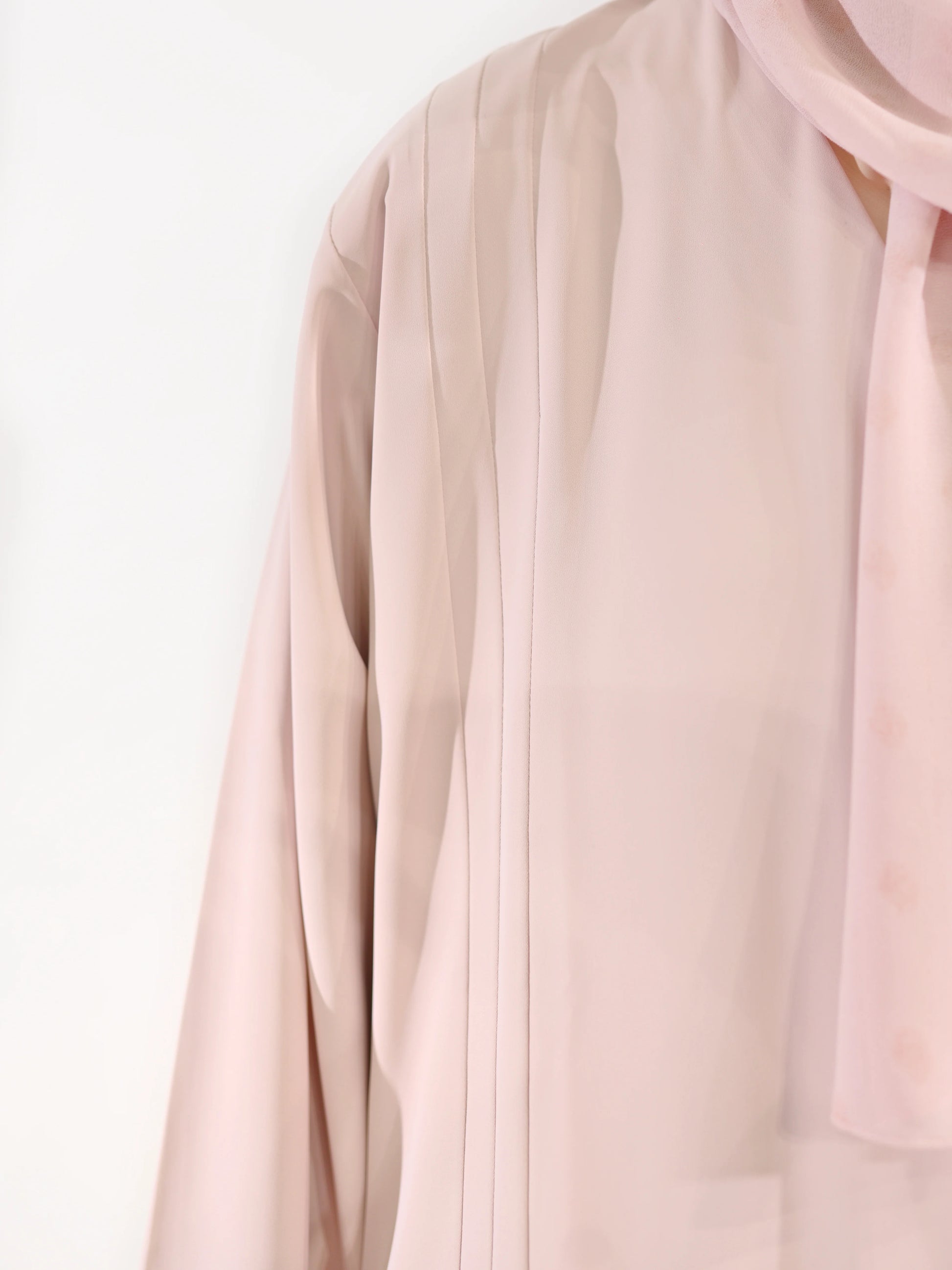 The delicate embellishment work enhances the abaya’s graceful drape while maintaining a clean and professional aesthetic. Thoughtfully balanced to provide subtle shimmer without overwhelming the design, it transitions effortlessly from work settings to semi-formal gatherings.