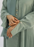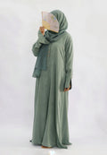 The soothing pistachio tone offers a refreshing, elegant vibe, making it perfect for daytime events or evening gatherings. Its graceful flow and minimal yet classy embellishments make it a go-to choice for those who love refined modest fashion.