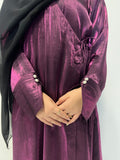 Our Mirage Abaya brings together elegance and sophistication in a truly luxurious piece. Crafted from premium silk shine fabric, it offers a soft, graceful drape with a subtle glow that elevates its deep blue hue. The front-open design allows for versatile styling and layering, while the adjustable cord tie at the waist can be fastened into a chic bow to create a feminine silhouette. Finishing details like the V-cut cuffs, adorned with pearl and diamante buttons, add an extra layer of glam—making this abaya perfect for special occasions or an elegant day out.
