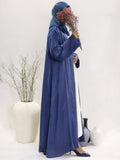 Elevate your elegance with our Blue Silk Abaya, crafted from luxurious silk fabric that offers a soft gleam and sophisticated shine. The front-open style gives you versatile styling options, while the chic sleeve design adds a modern touch. Perfect for formal occasions, weddings, and evening gatherings. Please note: Inner dress not included.
