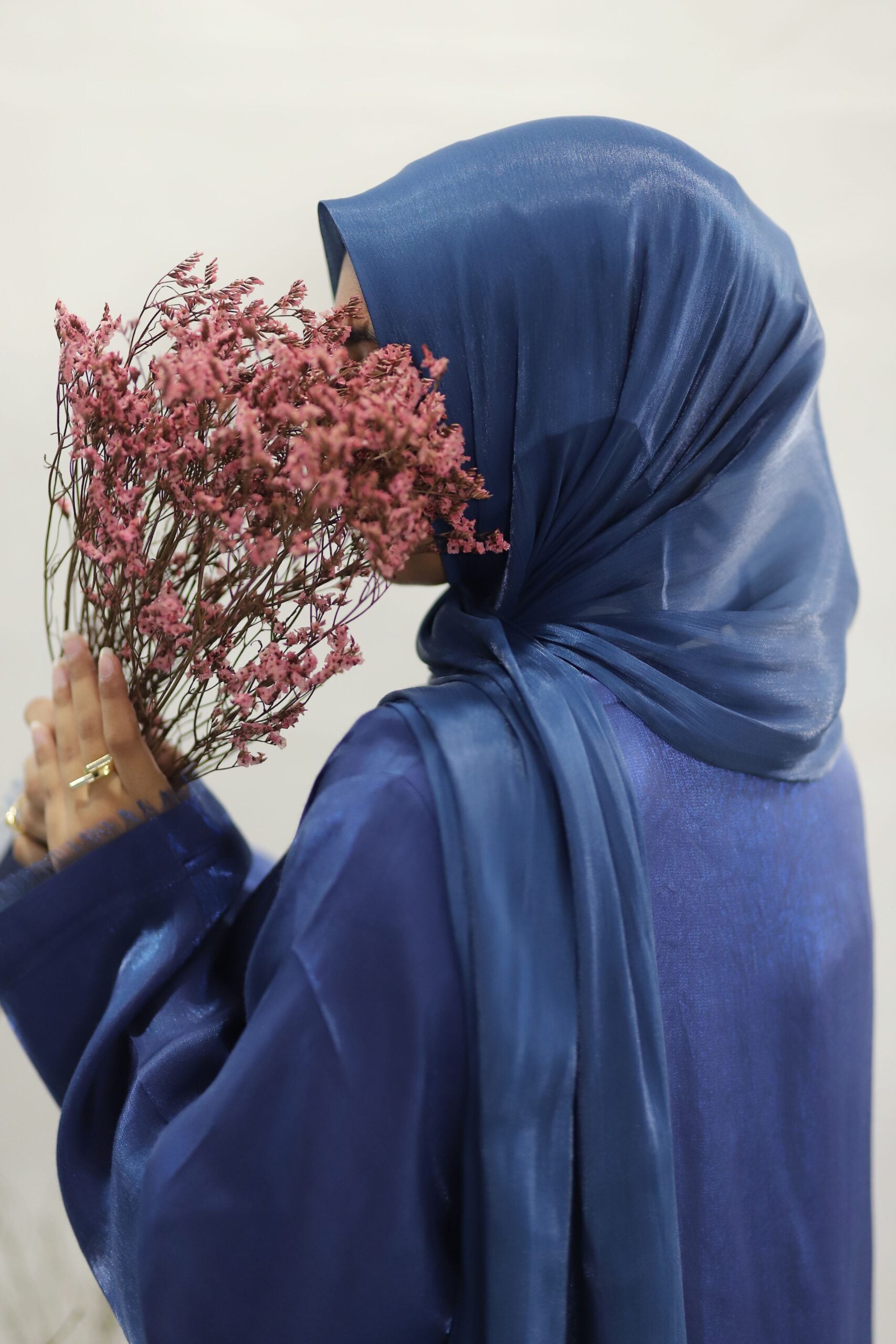 Elevate your elegance with our Blue Silk Abaya, crafted from luxurious silk fabric that offers a subtle gleam and sophisticated shine. The front-open design ensures versatility, while the chic sleeves add a contemporary flair, making it perfect for formal occasions and evening events. Please note: Inner dress not included.