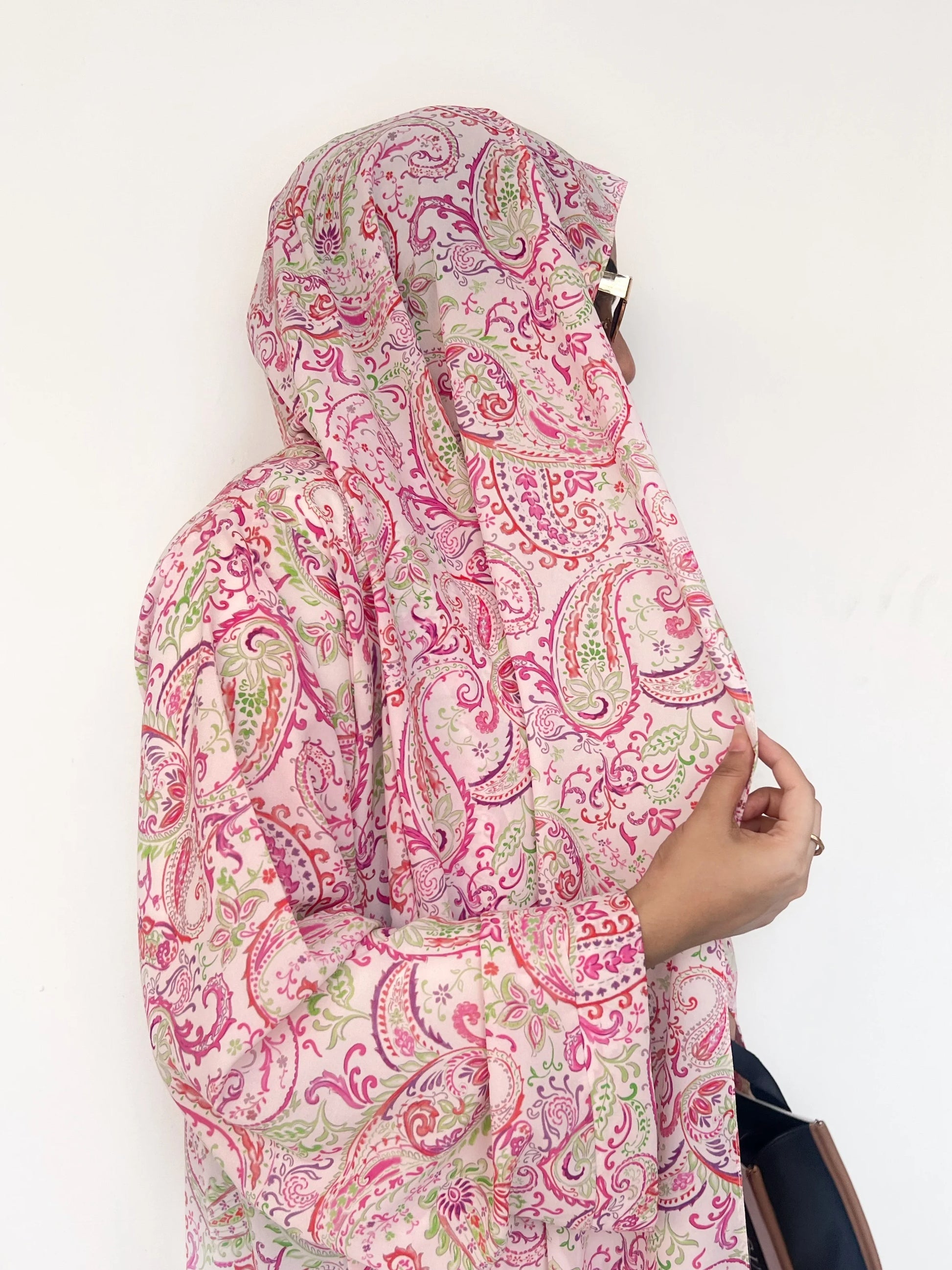 Each kimono comes with a matching hijab, making it a ready-to-wear modest outfit. The soft georgette fabric is lightweight and breathable – ideal for warmer days or for stylish layering year-round.