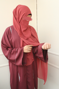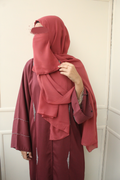 Our Niqab Set includes a matching chiffon hijab and niqab, crafted from premium quality fabric. The niqab is available in both tie-back and elastic options, offering comfort and secure coverage. Perfect for coordinated modest wear.