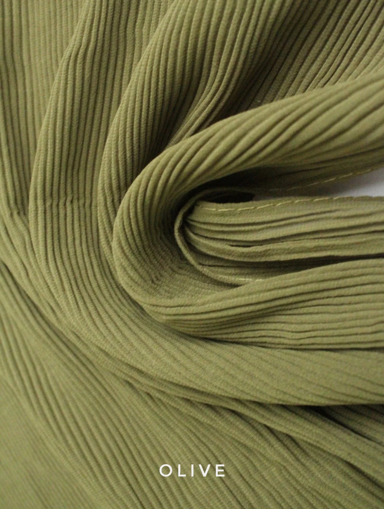 Pleated Georgette Hijab — a chic, modern hijab with a timeless pleated texture. Lightweight, easy to carry, and requires no ironing (can be steam ironed only) — perfect for effortless styling every day.