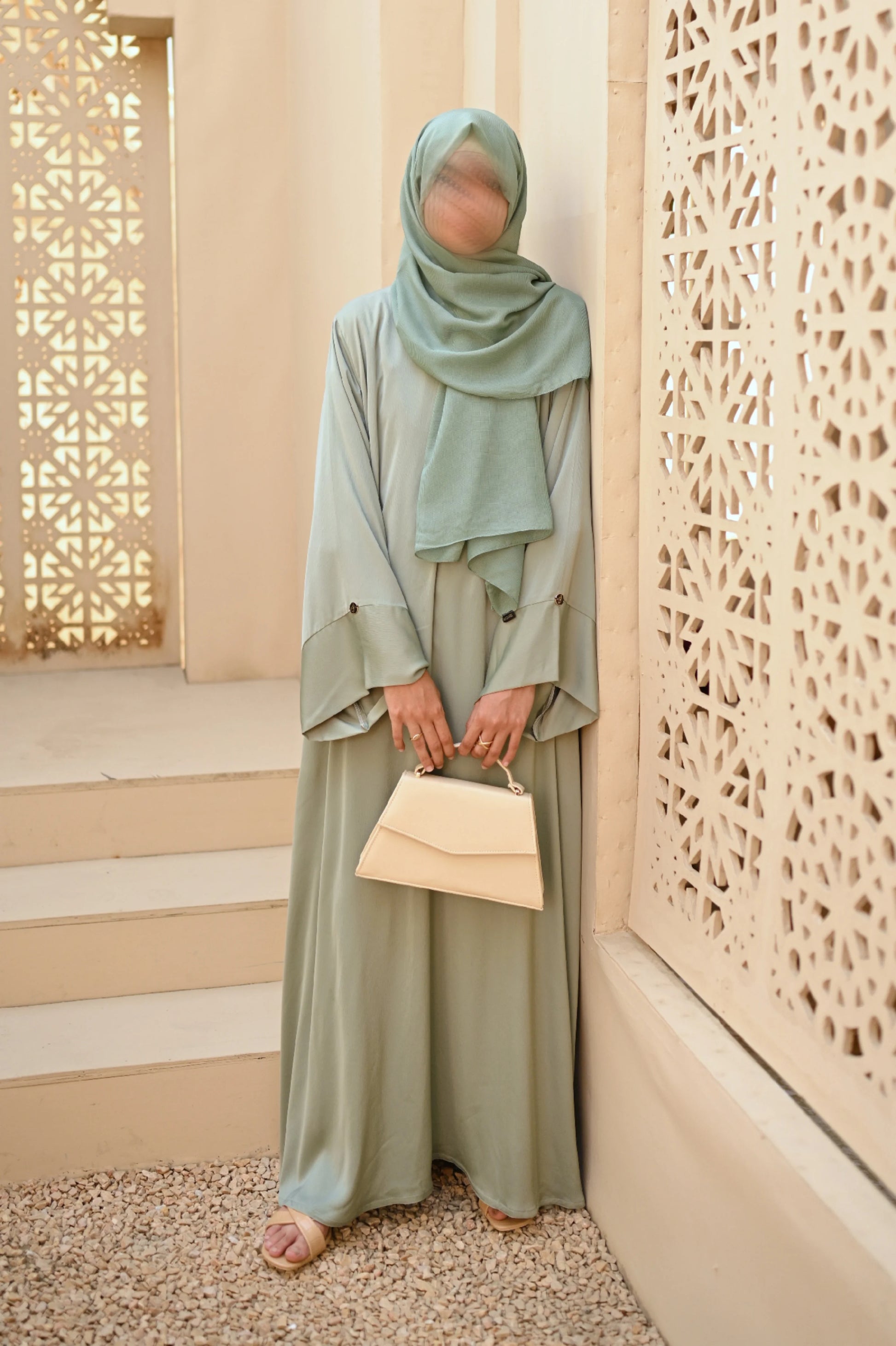 Each abaya comes as a complete set, including a matching chiffon hijab to maintain a cohesive, polished look from head to toe. The lightweight, airy hijab drapes beautifully and pairs perfectly with the abaya’s elegant sheen.