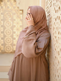 Each abaya comes as a complete set, including a matching chiffon hijab to maintain a cohesive, polished look from head to toe. The lightweight, airy hijab drapes beautifully and pairs perfectly with the abaya’s elegant sheen.