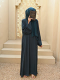 Each abaya comes as a complete set, including a matching chiffon hijab to maintain a cohesive, polished look from head to toe. The lightweight, airy hijab drapes beautifully and pairs perfectly with the abaya’s elegant sheen.