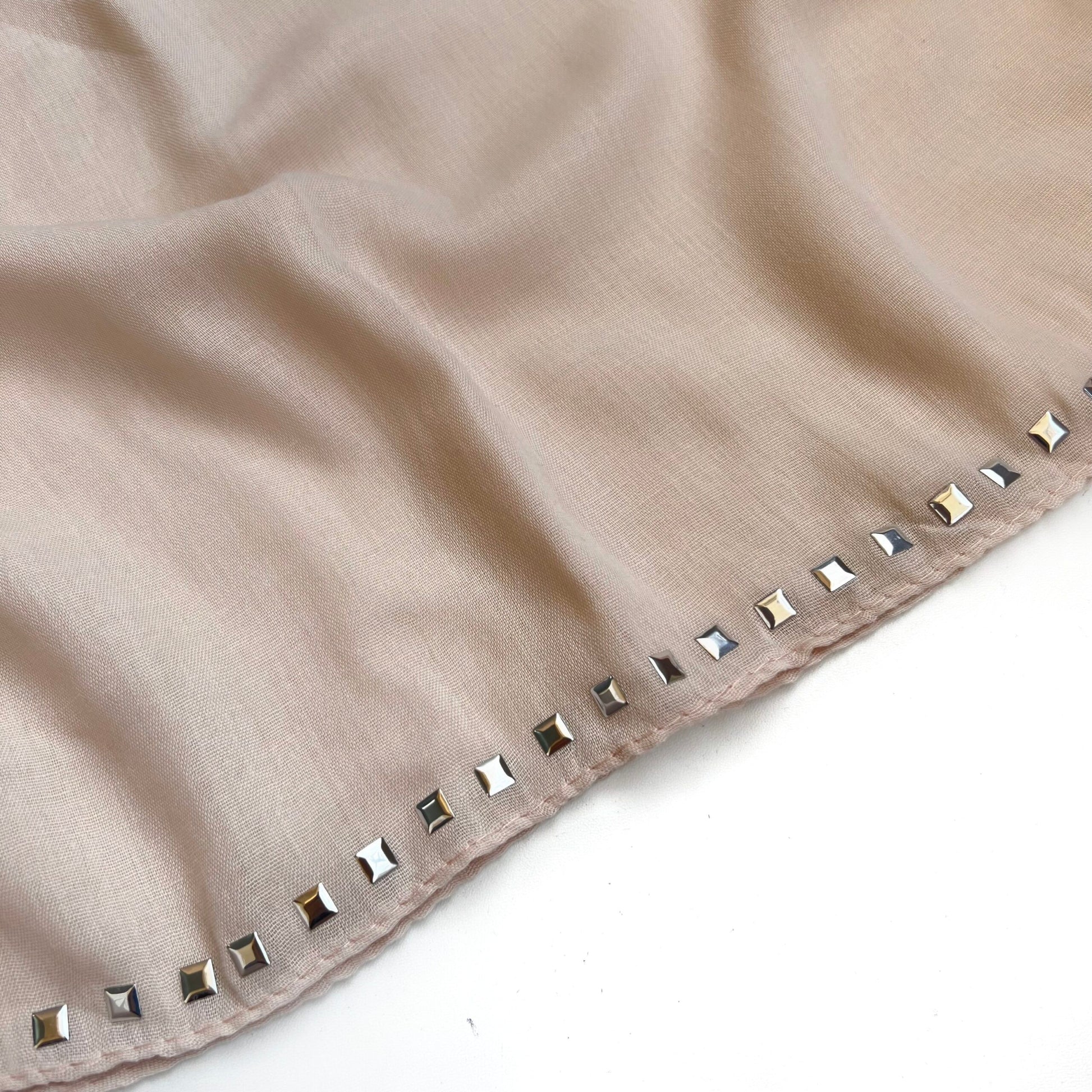 Disclaimer: This hijab includes hand-applied embellishments; variations in stud placement may occur, and some studs may be missing or misaligned.