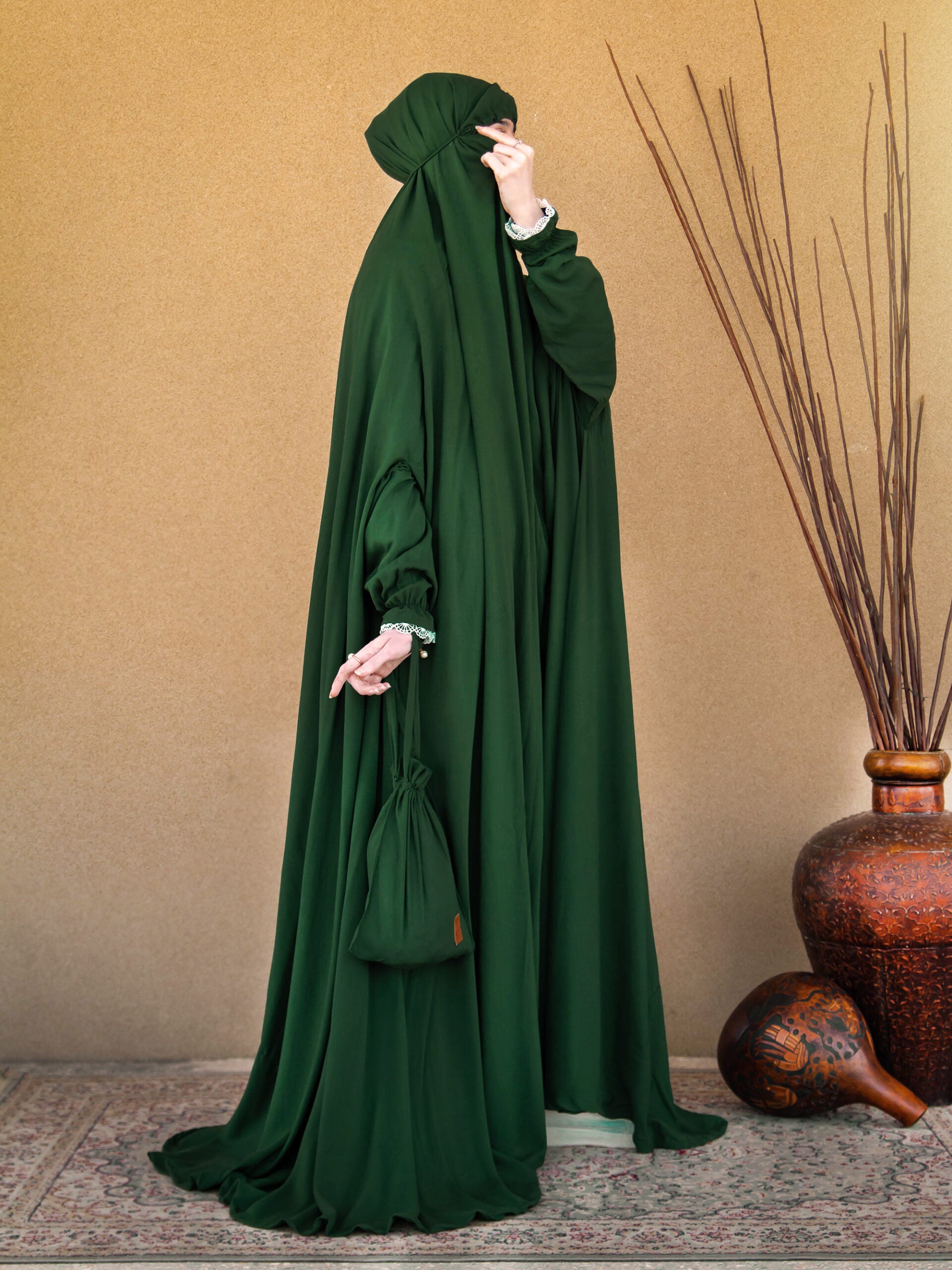 Whether you're at home or traveling, the Zenia Namaz Chadar is a practical and elegant companion for every Muslim woman. It comes with a convenient matching pouch for easy storage and portability—perfect for carrying in your bag or gifting to someone special.