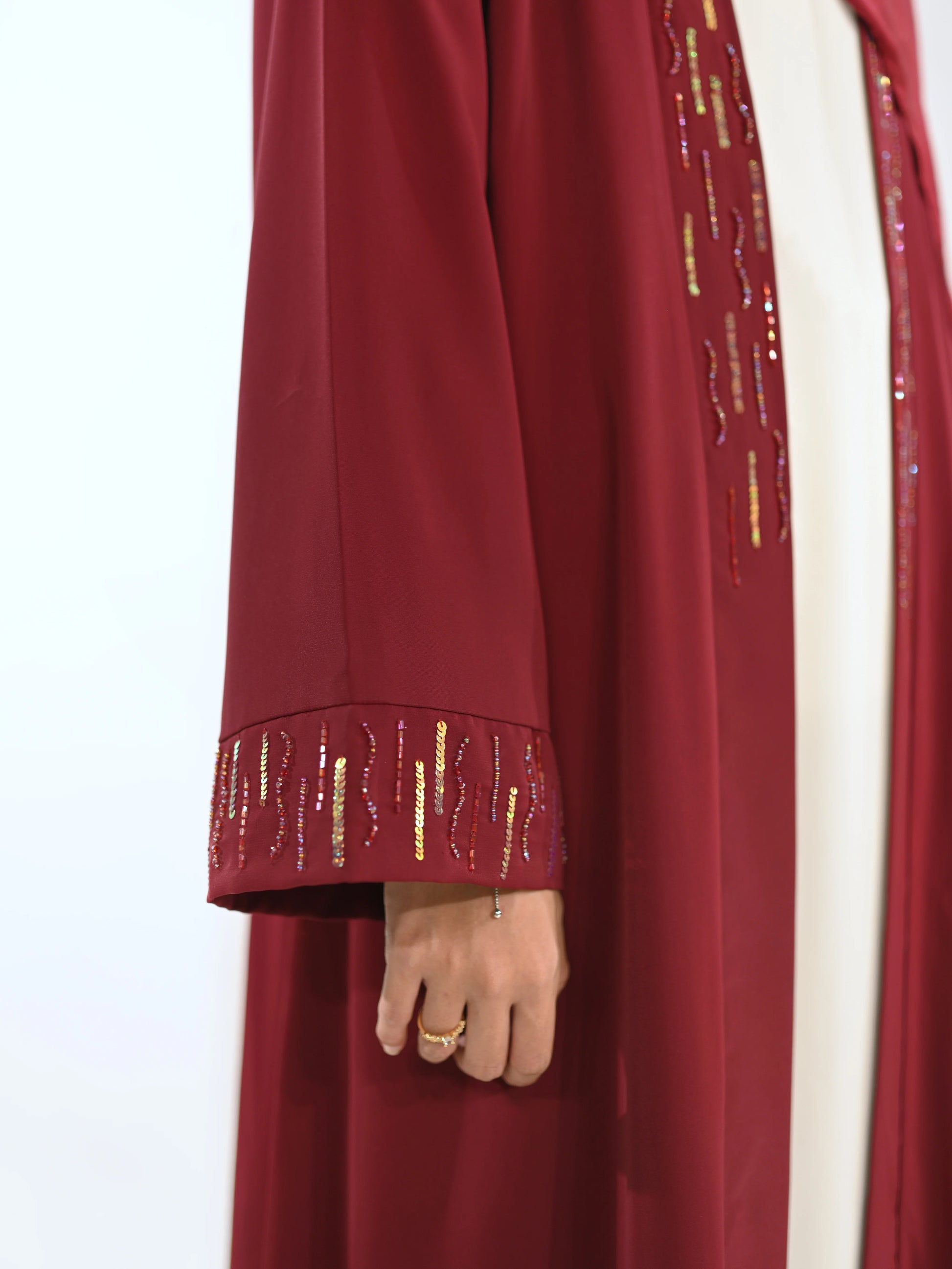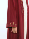 Gracefully designed for refined modest styling, this front-open kimono style abaya is crafted from premium ATY fabric that offers a smooth, soft texture with a breathable, summer-friendly feel. The opaque finish ensures comfortable coverage while maintaining a fluid, elegant drape.